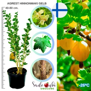 Żółte agrestowe owoce to prawdziwy rarytas, który zachwyci nawet najbardziej wymagających ogrodników. Odmiana Hinnonmaki Gelb, dzięki swojemu wyjątkowemu kolorowi, stanie się prawdziwą ozdobą Twojego ogrodu i tematem rozmów podczas ogrodniczych spotkań. Doskonała na rodzinne uprawy, zachwyci dzieci nietypową barwą, a dorosłych – wyjątkowym, słodkim smakiem. Zamów już dziś tę fińską perełkę i dołącz do ekskluzywnego grona ogrodników uprawiających złote skarby natury. Pamiętaj, że dostępność tej rzadkiej odmiany jest ograniczona, a każda sadzonka to potencjał na wieloletnie, obfite plonowanie!
