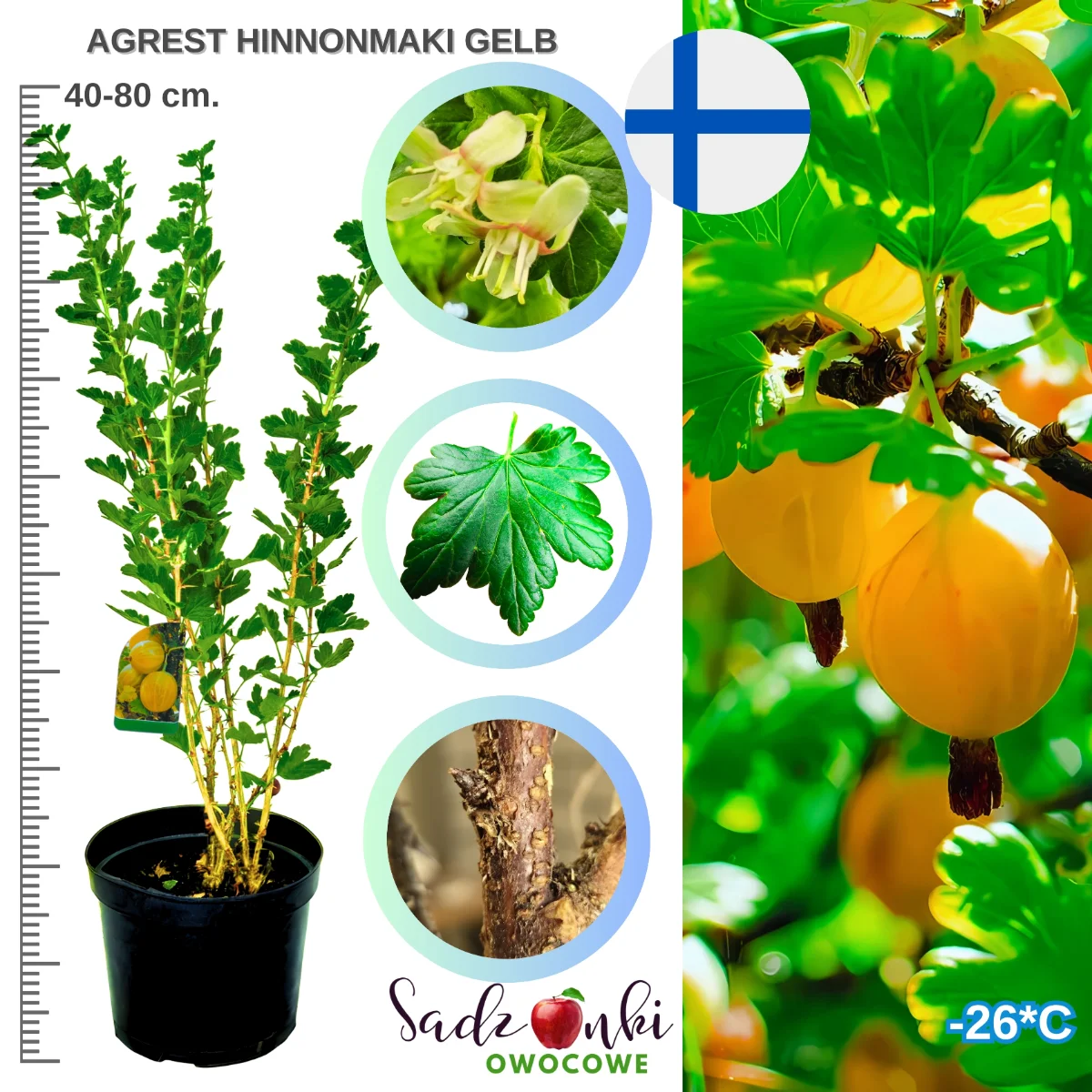 Agrest Hinnonmaki Gelb – sadzonka | Fiński złoty skarb w Twoim ogrodzie