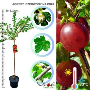 Agrest Triumf na pniu | czerwony, plenna sadzonka do ogrodu