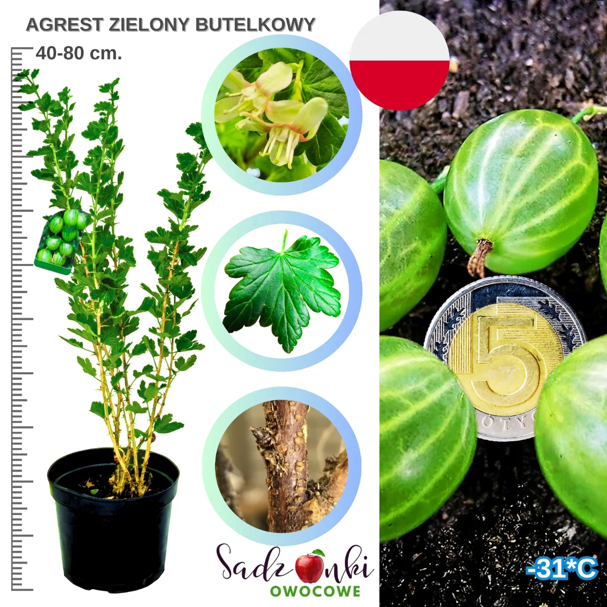 Agrest Zielony Butelkowy – sadzonka | Gigantyczne owoce!