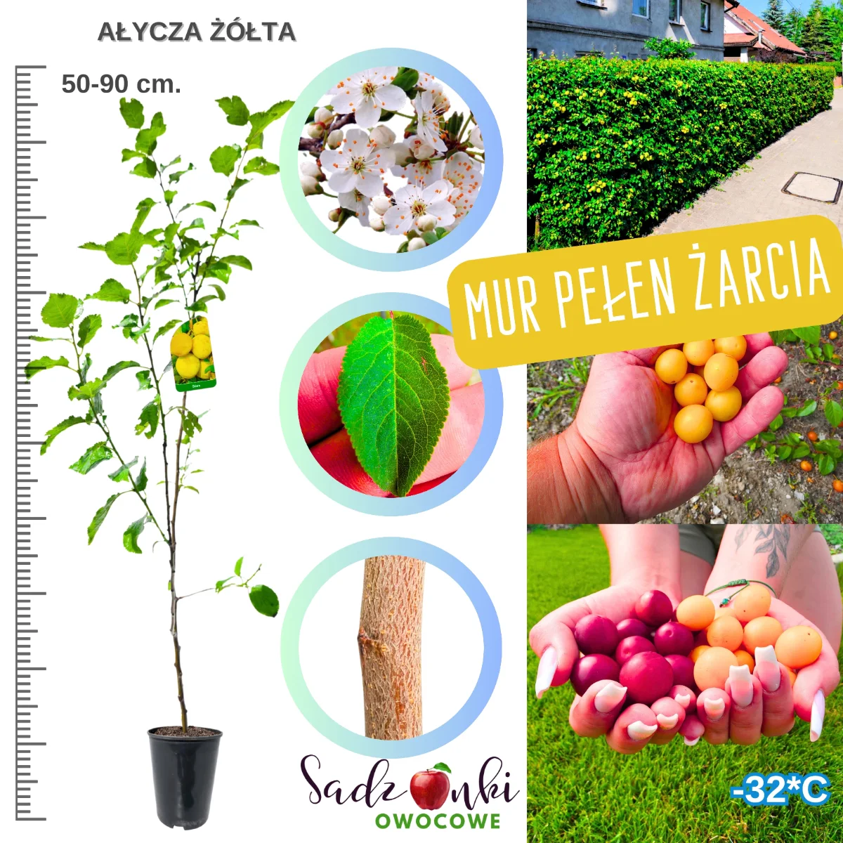 Ałycza żółta – sadzonka drzewka owocowego do ogrodu i nasadzeń