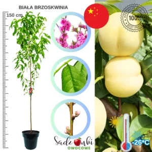 Nowoczesne odmiany białej brzoskwini są coraz lepiej przystosowane do warunków klimatycznych w Polsce. Przy odpowiednim stanowisku i standardowej ochronie młodych drzewek zimą ryzyko uszkodzeń mrozowych jest niewielkie. W praktyce oznacza to spokojniejsze zimowanie, lepszy start wiosenny i większą stabilność plonów.
