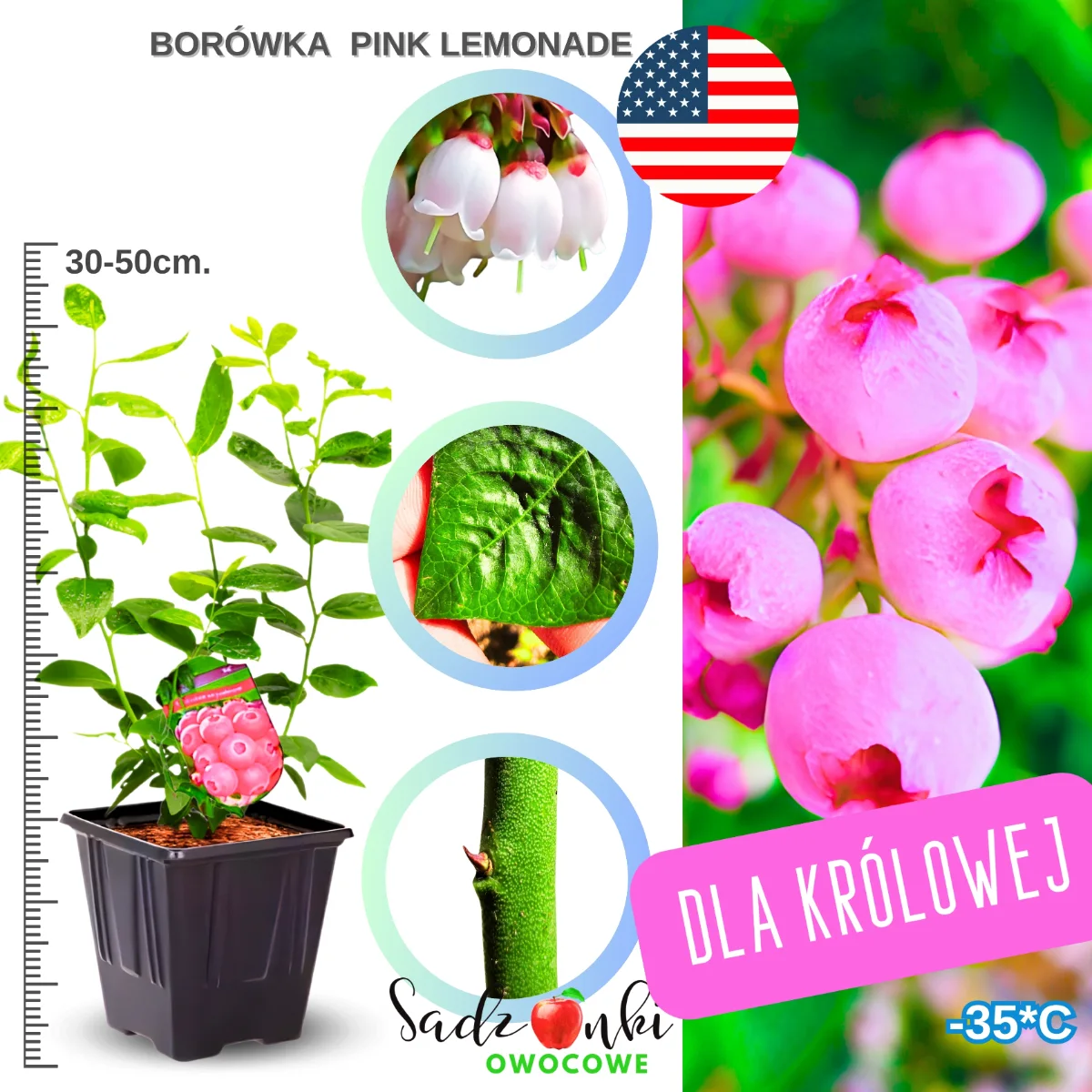 Borówka Pink Lemonade to więcej niż roślina – to prawdziwa ogrodowa konwersacja! Każdy, kto zobaczy różowe jagody w Twoim ogrodzie, będzie pod wrażeniem tego botanicznego rarytasu. Zdecyduj się na Pink Lemonade już dziś i zaskocz rodzinę oraz gości nie tylko niezwykłym smakiem, ale również spektakularnym wyglądem jagód. Nasze sadzonki zostały starannie wyhodowane, aby zapewnić Ci najlepszy start uprawy tej wyjątkowej odmiany. Spraw, by Twój ogród wyróżniał się na tle innych – postaw na oryginalność z borówką Pink Lemonade!