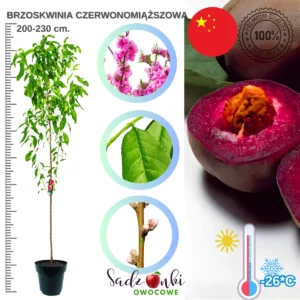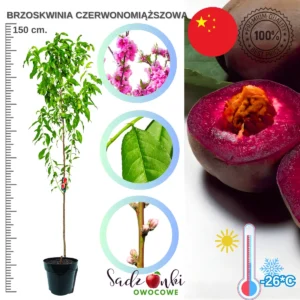 To propozycja dla osób, które chcą mieć w ogrodzie coś więcej niż „zwykłą” brzoskwinię. Brzoskwinia czerwonomiąższowa łączy efekt wizualny z realną wartością użytkową: daje soczyste owoce, świetnie nadaje się do przetworów i coraz częściej trafia do ogrodów osób szukających odmian premium.