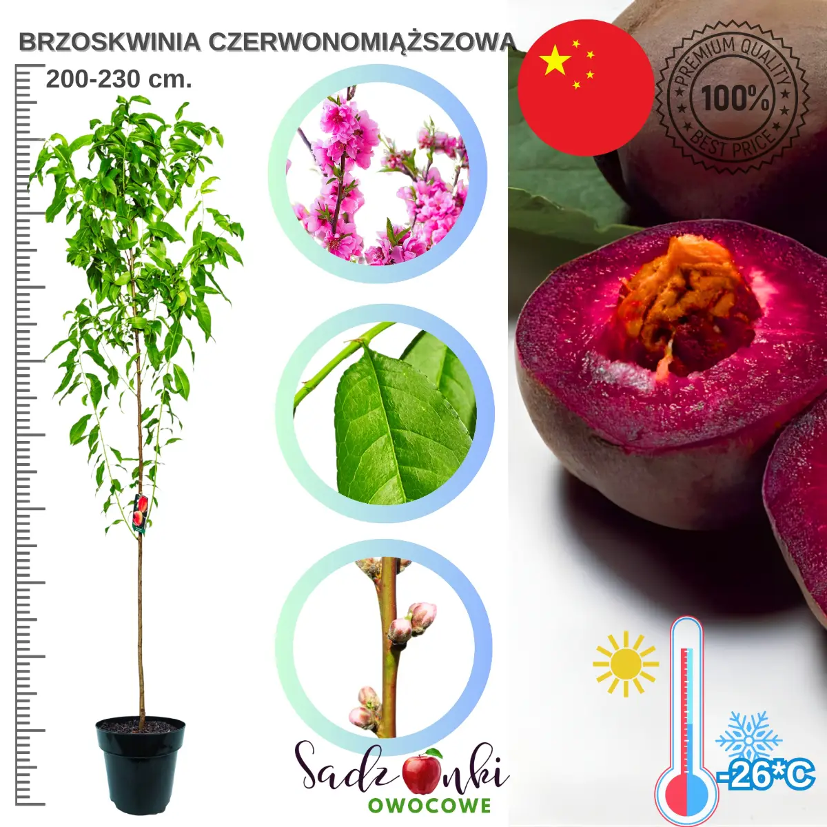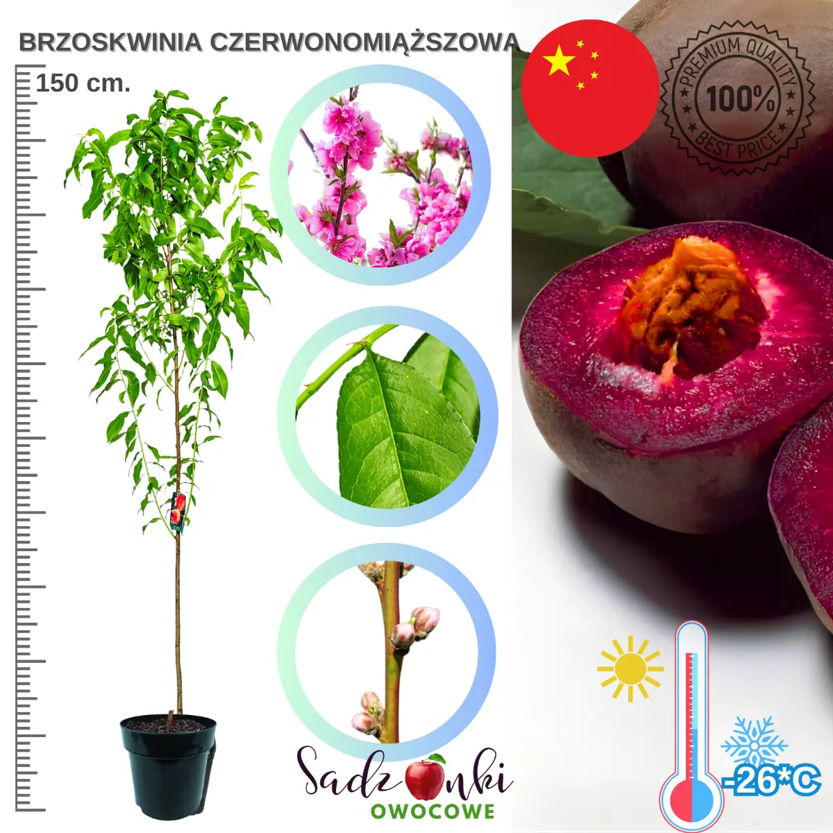 Jedną z dużych zalet tej grupy brzoskwiń jest dobra tolerancja na niskie temperatury (w zależności od selekcji nawet w okolice −26 / −29°C). To sprawia, że brzoskwinia czerwonomiąższowa nadaje się do uprawy w większości regionów Polski, o ile zapewni się jej odpowiednie stanowisko.