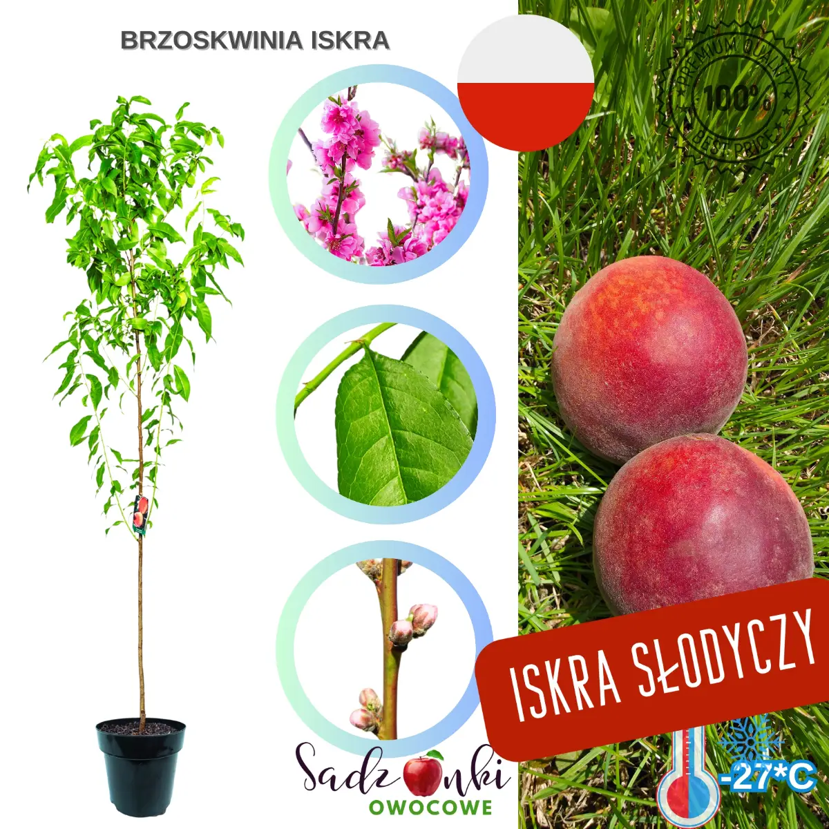 Jeśli sprzedajesz brzoskwinie sadzonki odmiany i klient pyta o coś „uniwersalnego”, Iskra jest właśnie takim wyborem.