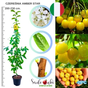 czereśnia Amber Star oferowana jest jako czereśnia sadzonka przeznaczona do sadzenia w gruncie. Drzewko zabezpieczane jest do transportu w sposób chroniący system korzeniowy przed przesuszeniem, a część nadziemna stabilizowana w opakowaniu.