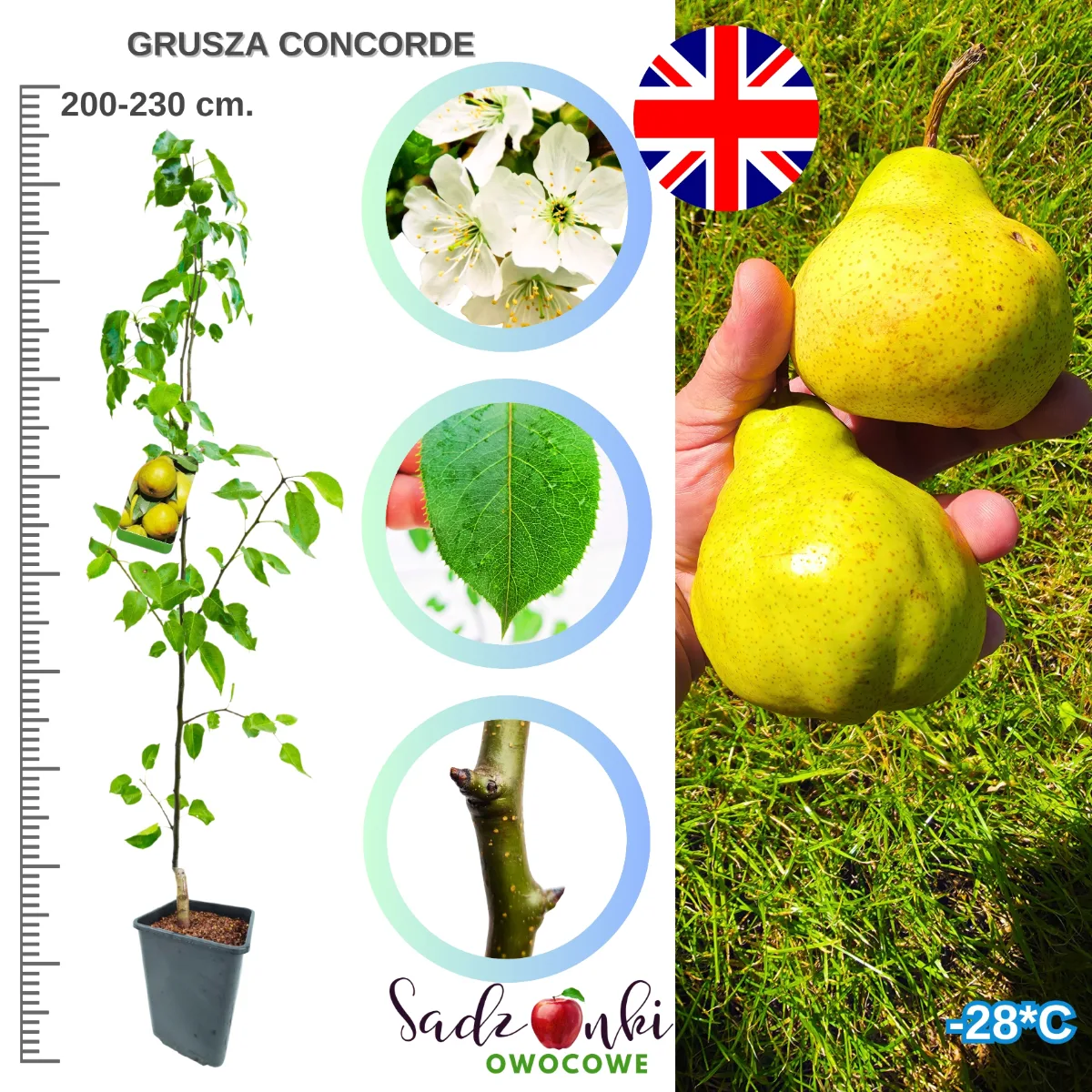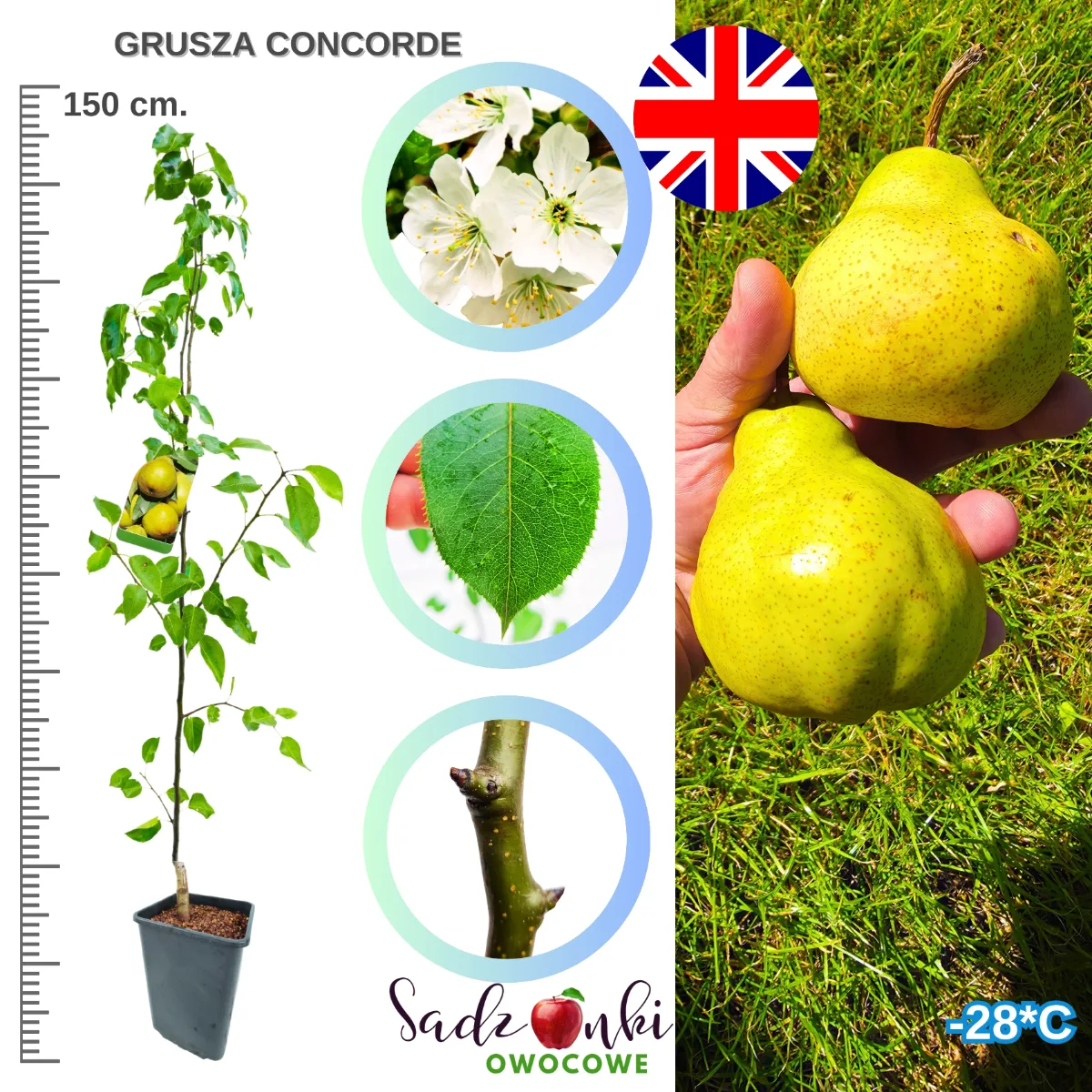Grusza Concorde – sadzonka 150 cm | Elegancka angielska odmiana o wykwintnym smaku