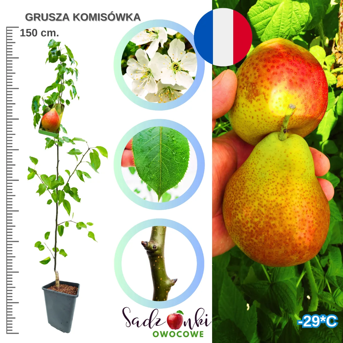 Sadzonka Komisówki o wysokości 150 cm, którą oferujemy, to młode, zdrowe drzewko z silnym systemem korzeniowym, gotowe do posadzenia w Twoim ogrodzie. Komisówka to więcej niż zwykła grusza – to część polskiego dziedzictwa sadowniczego, która zasługuje na miejsce w każdym przydomowym sadzie. Dzięki naszym sadzonkom możesz cieszyć się pierwszymi owocami już po 2-3 latach od posadzenia, a z czasem drzewo będzie dostarczać coraz obfitsze plony. Nie zwlekaj z decyzją – liczba dostępnych sadzonek tej legendarnej polskiej odmiany jest ograniczona, a zainteresowanie rośnie wraz z powrotem mody na tradycyjne, sprawdzone odmiany!