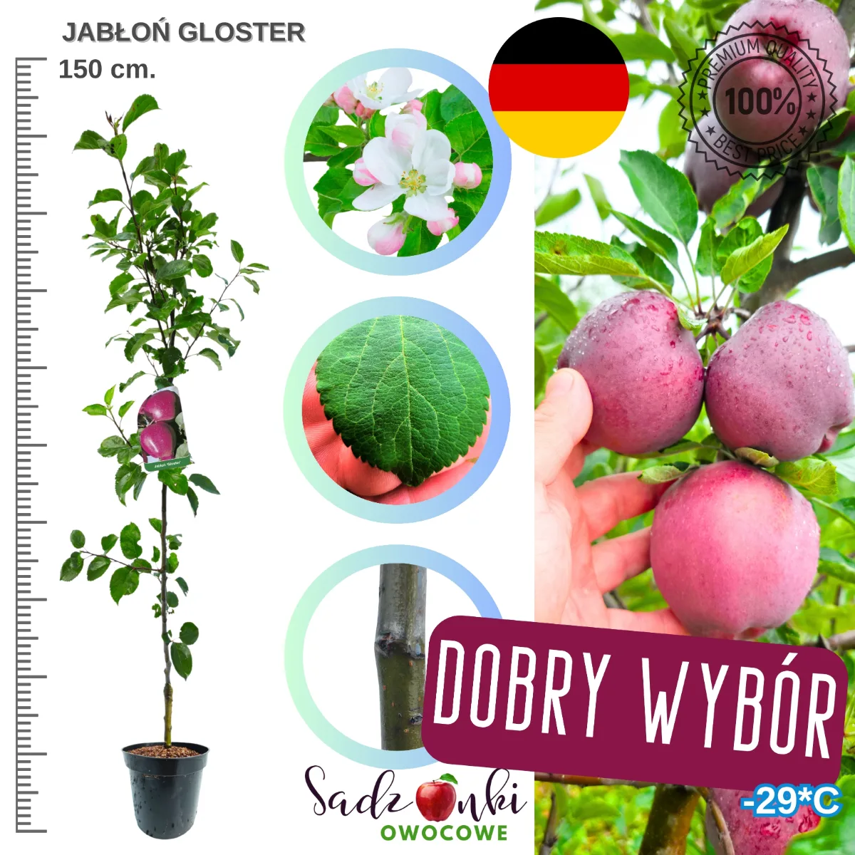 Jabłoń Gloster – sadzonka 150 cm | Soczyste, czerwone owoce