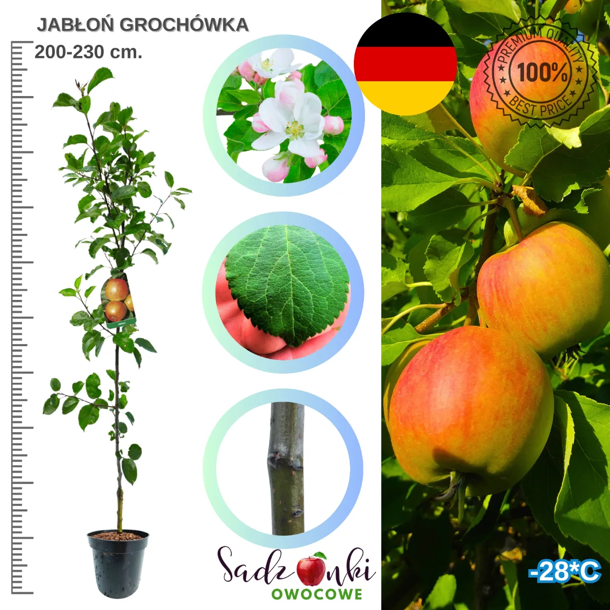 Jabłoń Grochówka – sadzonka 150 cm | Odporna na mróz i smaczne owoce