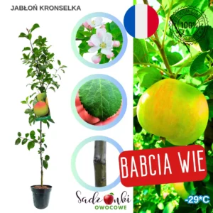 Jabłoń Kronselka, znana również jako Oliwka Kronselska, to stara francuska odmiana ceniona za wyjątkowy smak i aromat owoców. Jej owoce charakteryzują się złotą, czasem delikatnie pomarańczową skórką oraz kremowym, chrupiącym miąższem. Co więcej, Kronselka wyróżnia się najwyższą zawartością witaminy C spośród wszystkich odmian jabłoni.