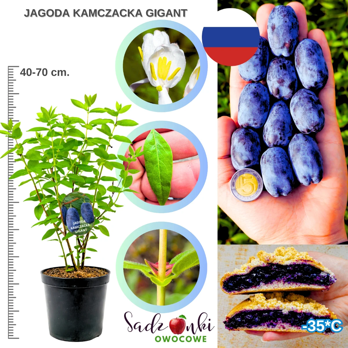 Jagoda Kamczacka Gigant – sadzonka  | Największe owoce wśród odmian syberyjskich