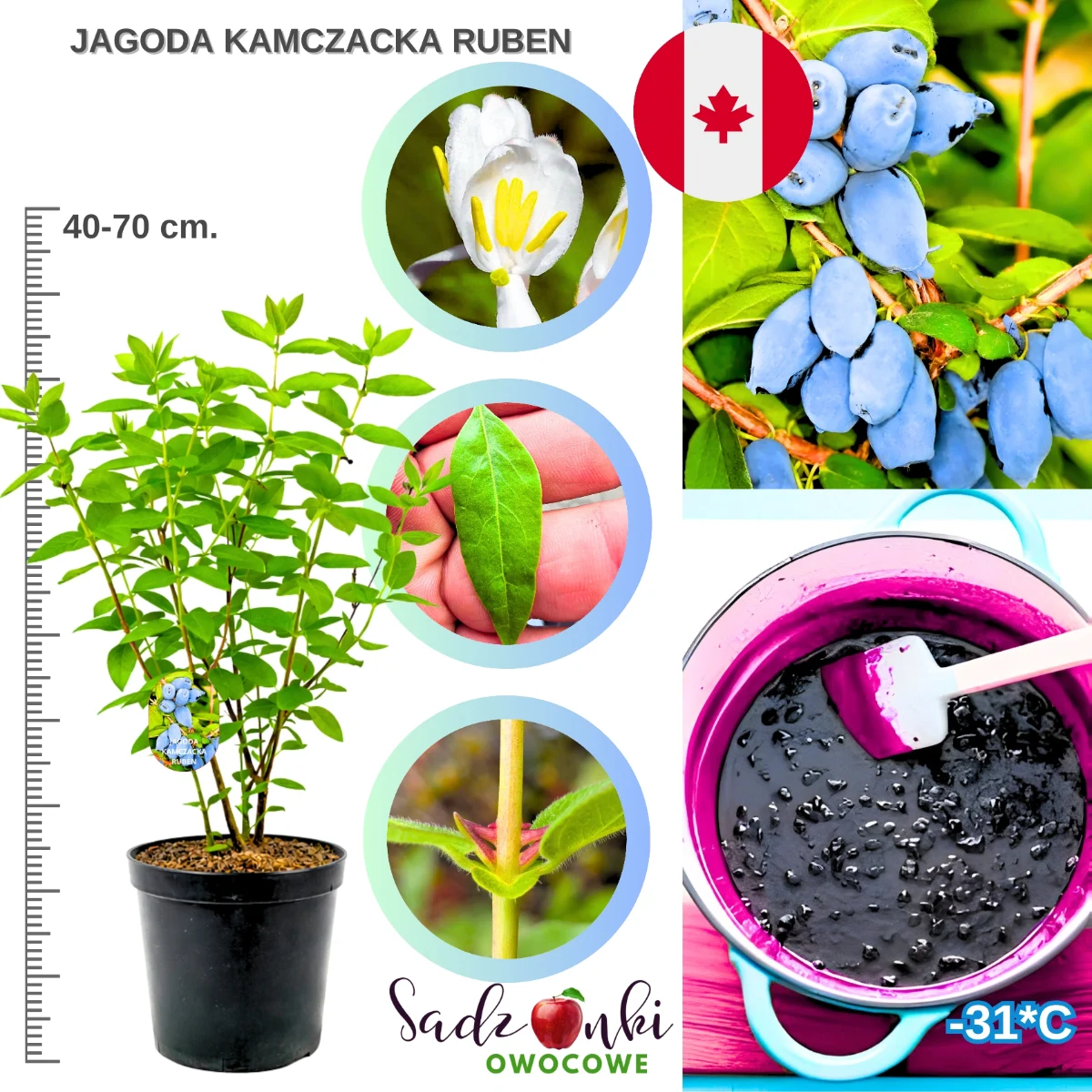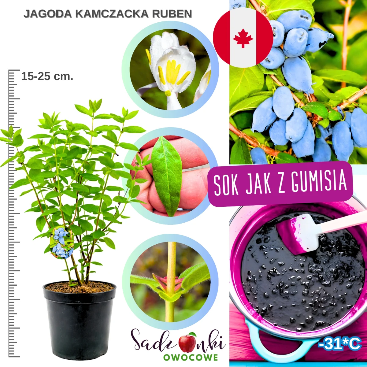 Jagoda kamczacka Ruben to prawdziwa rewolucja w świecie roślin owocowych. Łącząc gigantyczne owoce z łatwością uprawy, stwarza niepowtarzalną okazję do wprowadzenia do Twojego ogrodu rośliny, która będzie zachwycać smakiem i obfitością plonów przez dziesięciolecia. Nasze sadzonki o wysokości 15-70 cm są już gotowe, by rozpocząć owocową przygodę w Twoim ogrodzie. Dlaczego czekać? Dołącz do grona zadowolonych plantatorów, którzy odkryli sekret ogromnych, soczystych jagód kamczackich Ruben i cieszą się własnymi zbiorami tego niezwykłego owocu. Zamów teraz, póki ta limitowana odmiana jest jeszcze dostępna w naszej ofercie!