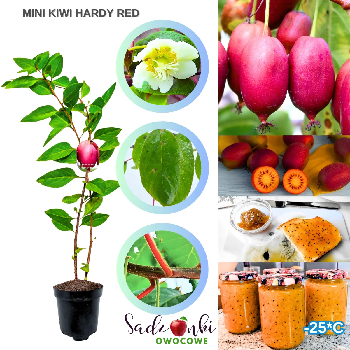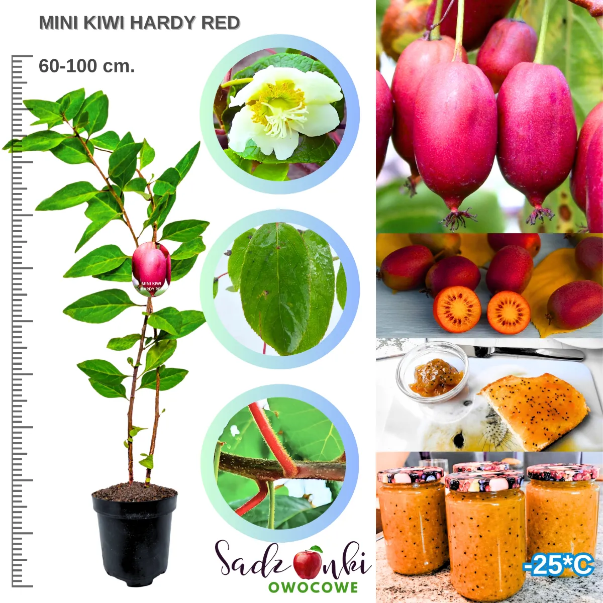 Mini Kiwi Hardy Red to wyjątkowa odmiana, która wyróżnia się intensywnym smakiem owoców, wysoką plennością oraz dobrą odpornością na mróz. Roślina jest coraz częściej sadzona w ogrodach przydomowych, ponieważ łączy walory dekoracyjne z realnymi zbiorami owoców.