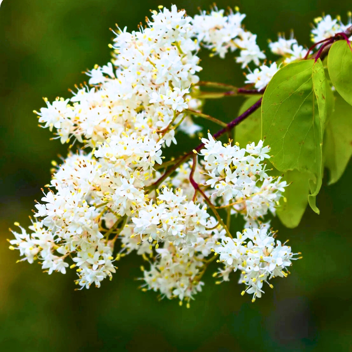 Jego duże, gęste wiechy kremowobiałych kwiatów roztaczają intensywny, przyjemny zapach i przyciągają liczne owady zapylające.
