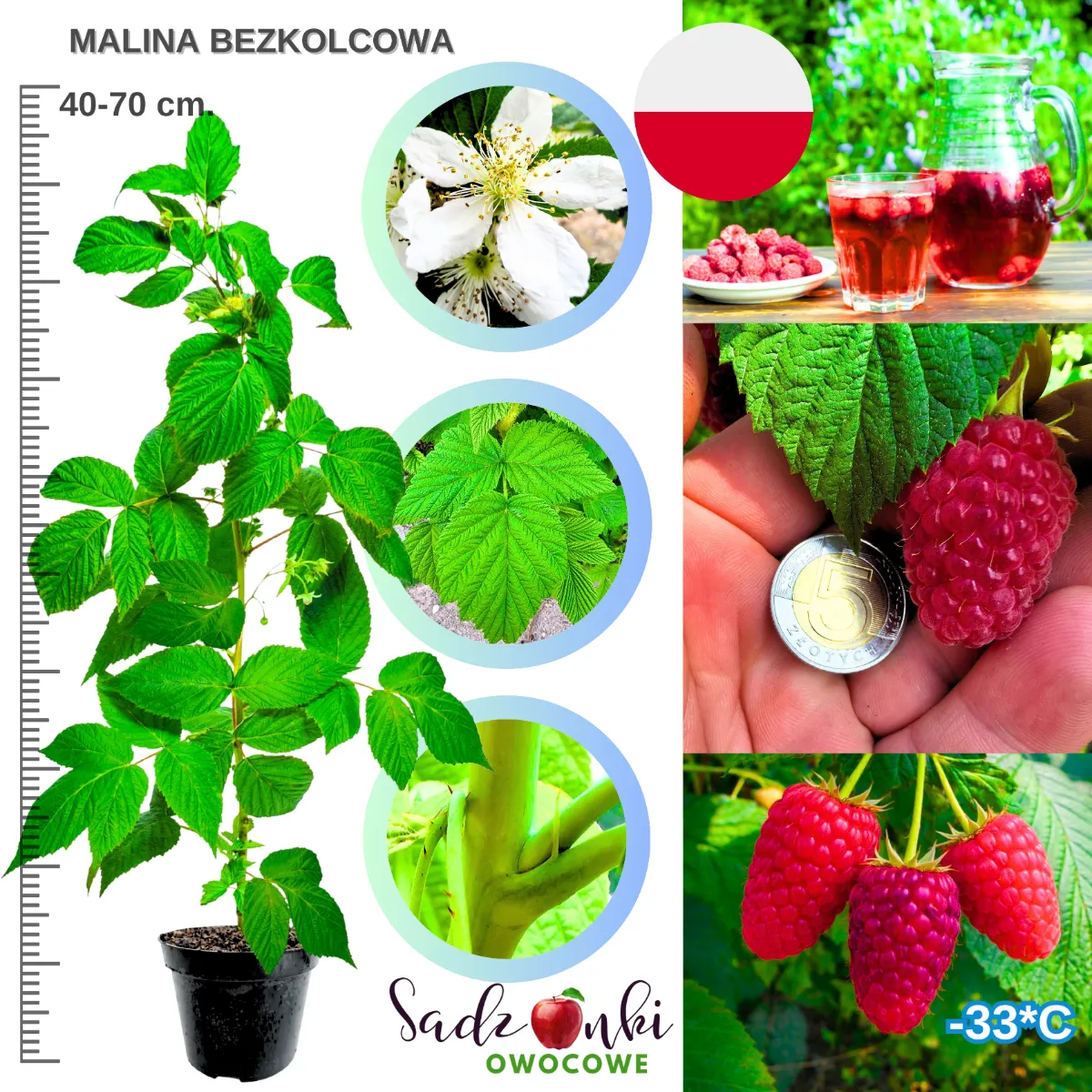 Oferowana malina bezkolcowa to zdrowa, silna sadzonka z dobrze rozwiniętym systemem korzeniowym. Każda roślina jest starannie zabezpieczona na czas transportu, co pozwala zachować jej kondycję podczas wysyłki.