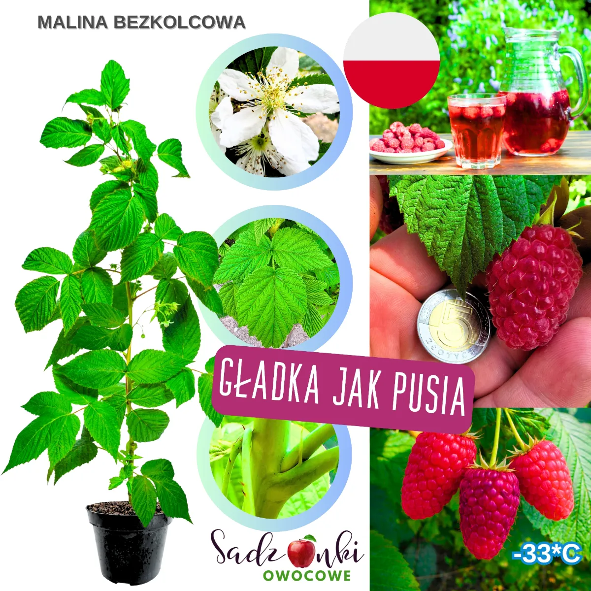 Jeśli zależy Ci na krzewie owocowym, który łączy wydajność 3–5 kg z krzewu, odporność na mróz do -33°C oraz wygodę zbioru, malina bezkolcowa spełnia te wymagania. To odmiana praktyczna, trwała i łatwa w prowadzeniu.