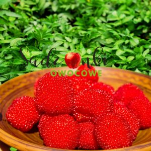 Duże owoce – dekoracyjne czerwone owoce przypominające malinę i poziomkę.