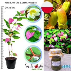 Mini Kiwi Dr Szymanowski to jedna z najbardziej rozpoznawalnych odmian mini kiwi przeznaczonych do uprawy w polskim klimacie. Roślina została wyselekcjonowana z myślą o ogrodach przydomowych i działkach, gdzie liczy się dobra odporność na mróz, stabilny wzrost oraz regularne owocowanie.