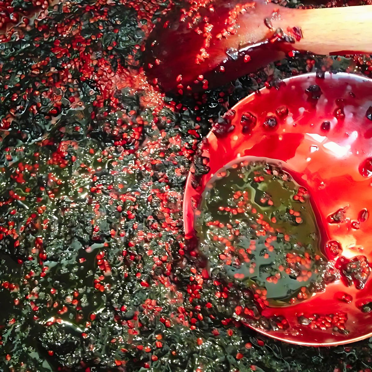 - Wino domowej roboty o głębokim rubinowym kolorze i bogatym bukiecie