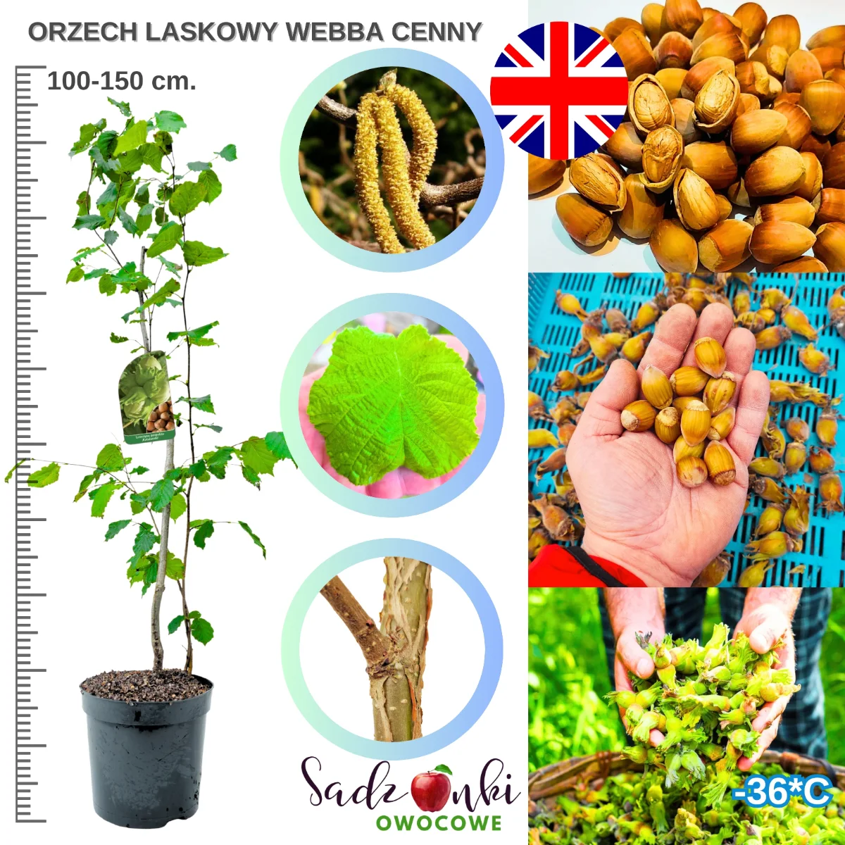 Orzech laskowy Webba Cenny to jedna z najczęściej wybieranych odmian przez osoby, które szukają sprawdzonej sadzonki do ogrodu lub na działkę. Roślina ceniona jest przede wszystkim za duże owoce, regularne plonowanie oraz dobrą adaptację do warunków klimatycznych w Polsce. W sprzedaży spotkasz ją zarówno jako młodą sadzonkę, jak i większe drzewka orzecha laskowego przygotowane do szybkiego startu po posadzeniu.