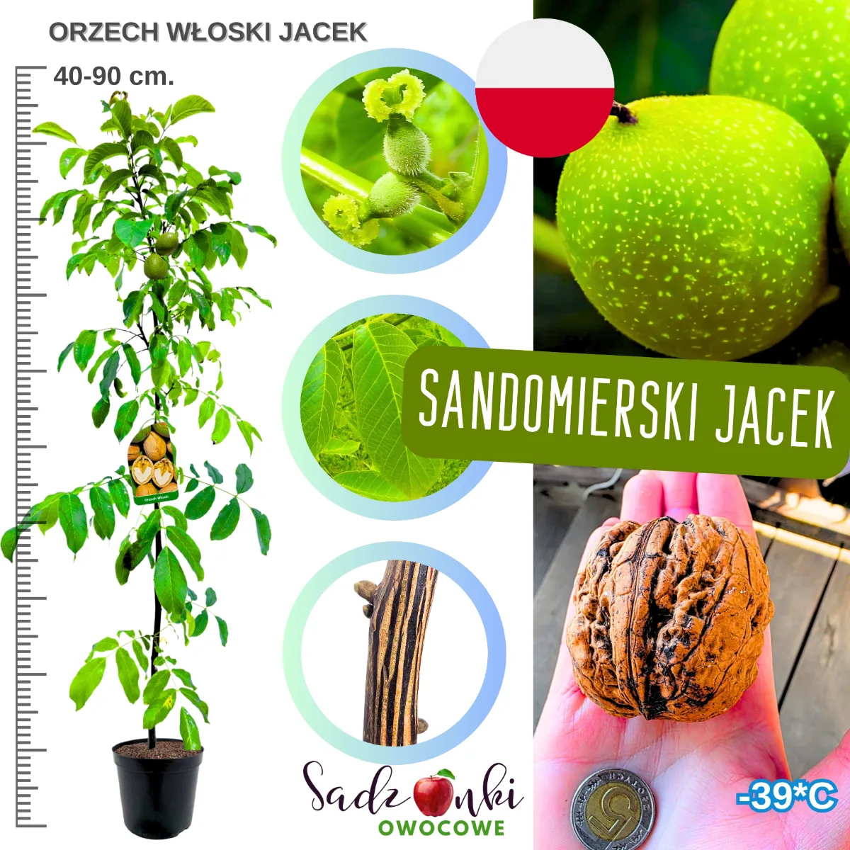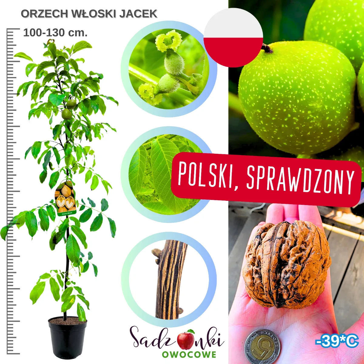 Kupując orzech włoski Jacek sadzonka, otrzymujesz roślinę przygotowaną do dalszego wzrostu w ogrodzie. Sadzonki tej odmiany charakteryzują się dobrze rozwiniętym systemem korzeniowym oraz zdrowym pędem głównym, który stanowi podstawę dalszego formowania drzewa.