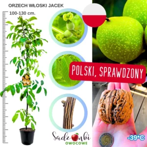 Orzech włoski Jacek to jedna z najbardziej cenionych odmian orzecha włoskiego uprawianych w polskich ogrodach i przydomowych sadach. Drzewo tej odmiany łączy silny wzrost, duże owoce oraz dobrą adaptację do naszego klimatu, dzięki czemu od wielu lat znajduje się w czołówce najchętniej wybieranych sadzonek orzecha włoskiego.