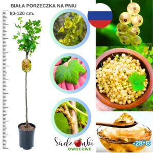 Ten produkt dobrze rotuje w e-commerce jeszcze z jednego powodu: wygląda jak gotowa roślina „premium”. Porzeczka biała na pniu jest częstym wyborem na prezent dla kogoś, kto urządza ogród lub działkę. Wysokość 80–120 cm robi wrażenie, a forma pniowa wygląda jak mini-drzewko, nie jak typowy krzew owocowy.