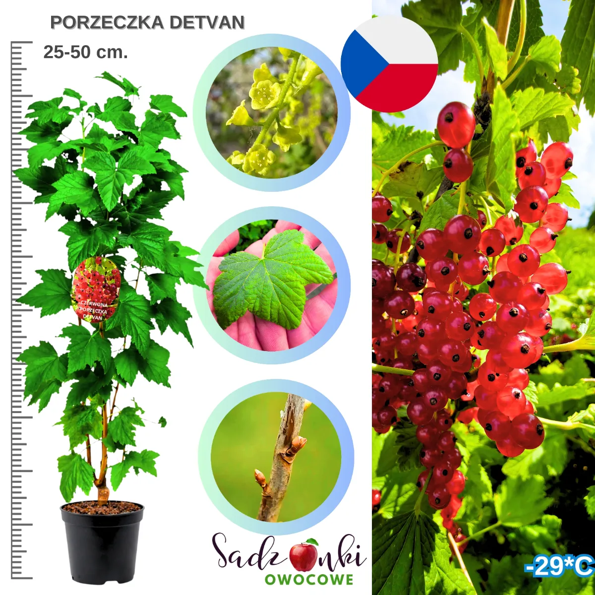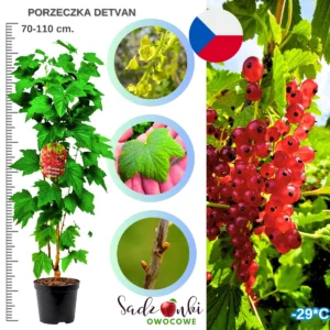 Porzeczka Detvan to jedna z najbardziej cenionych odmian czerwonej porzeczki, znana z wysokiej plenności, stabilnego wzrostu i bardzo dobrej odporności na warunki klimatyczne Europy Środkowej. Odmiana została wyhodowana w Czechach i od lat jest chętnie sadzona zarówno w ogrodach przydomowych, jak i w profesjonalnych nasadzeniach owocowych. Dzięki połączeniu dobrej jakości owoców, długich gron i łatwej uprawy porzeczka Detvan uznawana jest za odmianę niezwykle praktyczną dla osób, które chcą uzyskać stabilne plony w ogrodzie.