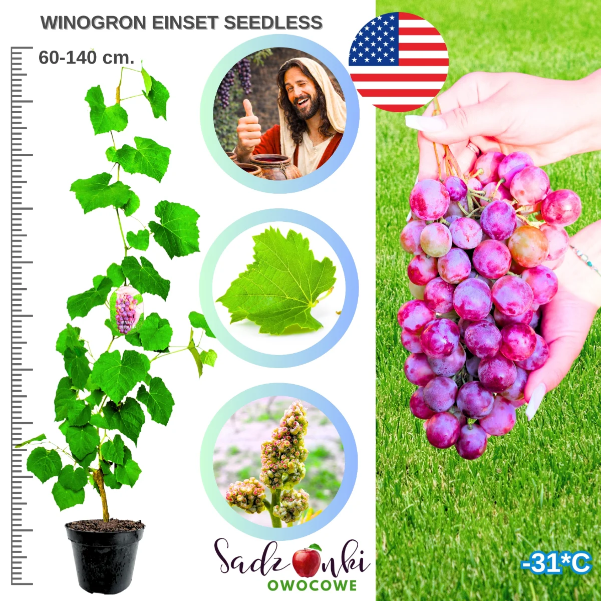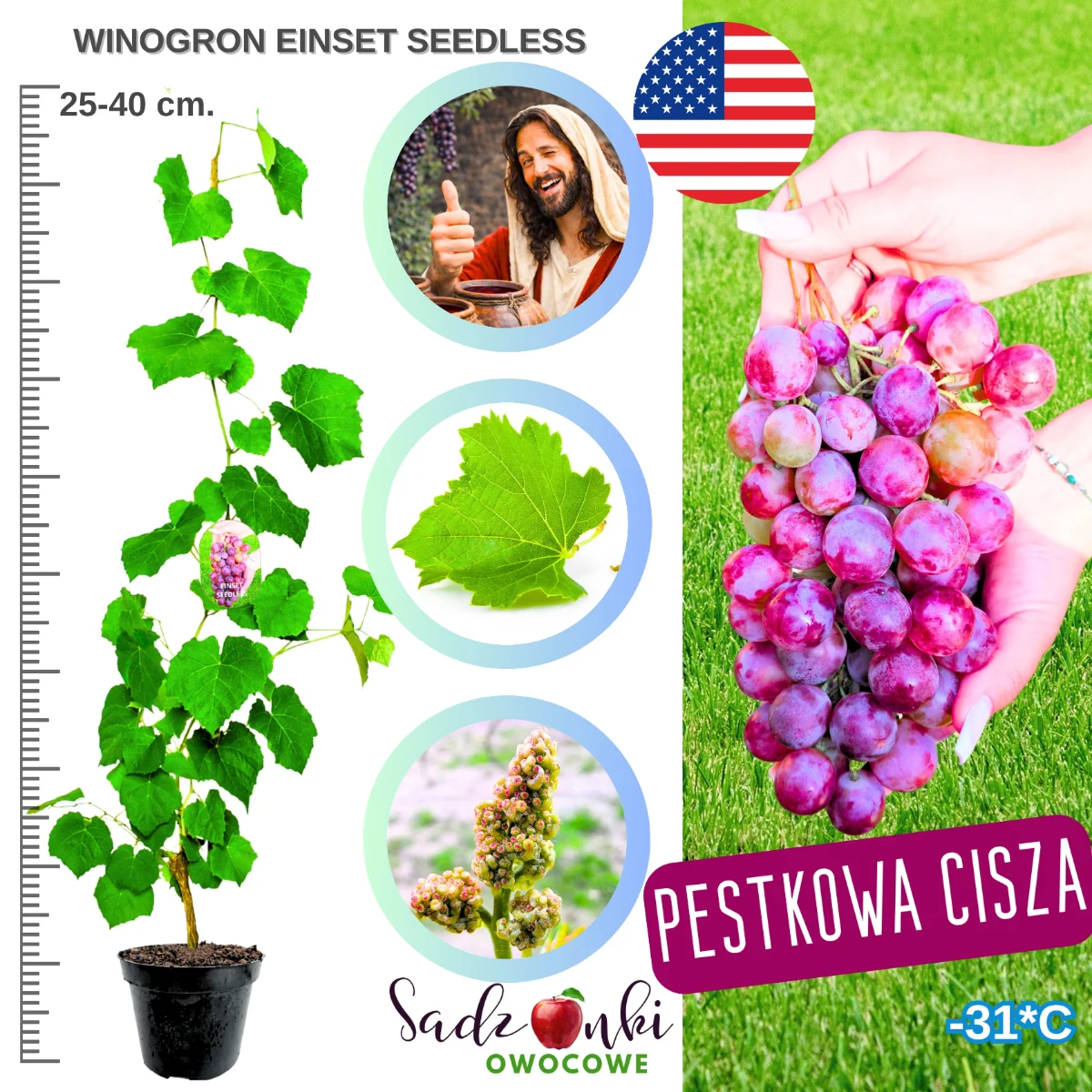 Einset Seedless to nie tylko roślina – to inwestycja w lata satysfakcji i niezapomnianych smaków. Z każdym sezonem Twoja winorośl będzie coraz obficiej owocować, dostarczając wyjątkowych, bezpestkowych winogron o charakterystycznym truskawkowym aromacie. Zamów sadzonkę już dziś i dołącz do grona pasjonatów, którzy odkryli radość z hodowania własnych, amerykańskich winogron. Podnieś jakość swojego ogrodu o poziom wyżej – z winogronami Einset Seedless każdy sezon stanie się wyjątkowy!