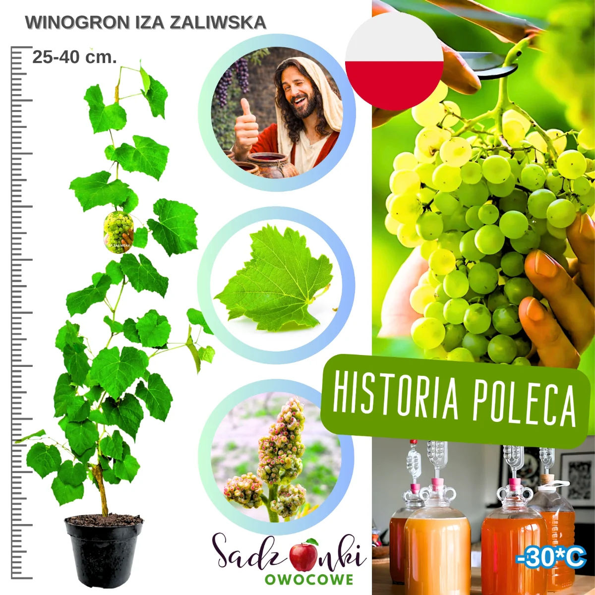 Iza Zaliwska to więcej niż roślina – to część polskiego dziedzictwa winiarskiego, które odradza się na naszych oczach. Decydując się na tę odmianę, nie tylko zyskujesz dostęp do wyjątkowych owoców, ale również wspierasz rodzimą hodowlę i tradycję. Wyobraź sobie dumę, gdy podczas letniego grillowania podasz gościom wino własnej produkcji lub udekorujesz stół własnymi, perfekcyjnie dojrzałymi gronami! Nie odkładaj marzeń o własnej winorośli na później – teraz jest idealny moment na posadzenie tego polskiego skarbu w Twoim ogrodzie. Liczba sadzonek w tej promocji jest ograniczona – zamów już dziś i dołącz do grona pasjonatów polskiego winiarstwa!