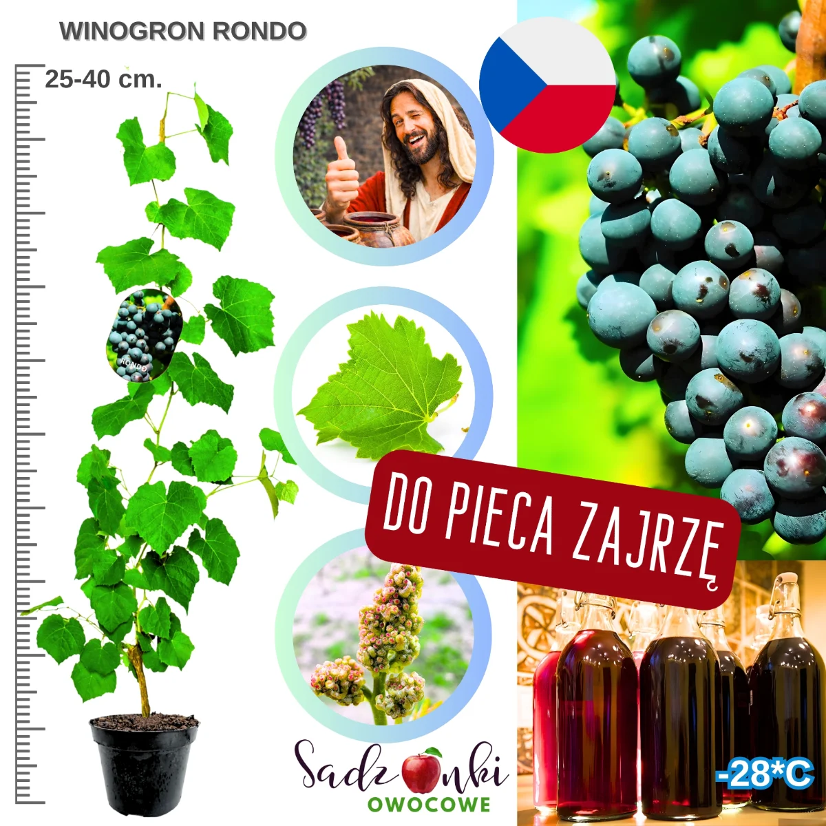 Produkcja własnego wina to nie tylko hobby – to pasja i styl życia, który przynosi ogromną satysfakcję. Wyobraź sobie dumę, gdy podczas przyjęcia postawisz na stole butelkę opatrzoną etykietą „Wyprodukowano w domowej winnicy”. Odmiana Rondo to pierwszy i najważniejszy krok w tej fascynującej podróży. Dzięki swojej adaptacji do polskiego klimatu, niezawodności plonowania i wyjątkowym właściwościom winiarskim, gwarantuje sukces nawet początkującym pasjonatom. Nie odkładaj marzeń o własnym winie na później – teraz jest idealny moment, by rozpocząć swoją winiarską przygodę z odmianą Rondo. Liczba sadzonek w tej promocji jest ograniczona – zamów już dziś!